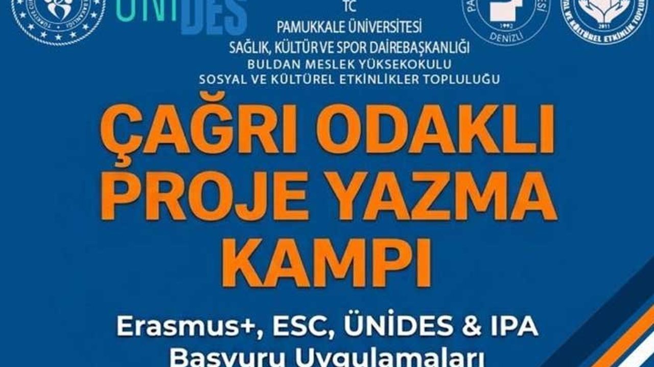 Pamukkale Üniversitesi Buldan Meslek Yüksekokulu, Gençlik ve Spor Bakanlığı tarafından yürütülen ÜNİDES (Üniversite Öğrenci Toplulukları İş Birliği ve Destek Programı) 6. Dönem kapsamında önemli bir projeye imza attı. Yürütücülüğünü Buldan MYO Sosyal ve Kültürel Etkinlikler Topluluğu ile Pamukkale Üniversitesi Genç Ofis’in üstlendiği "Çağrı Odaklı Proje Yazma Kampı (İleri Düzey): Erasmus+ / ESC / ÜNİDES / IPA Başvuru Uygulamaları" isimli ulusal ölçekli çalışma kabul edildi.