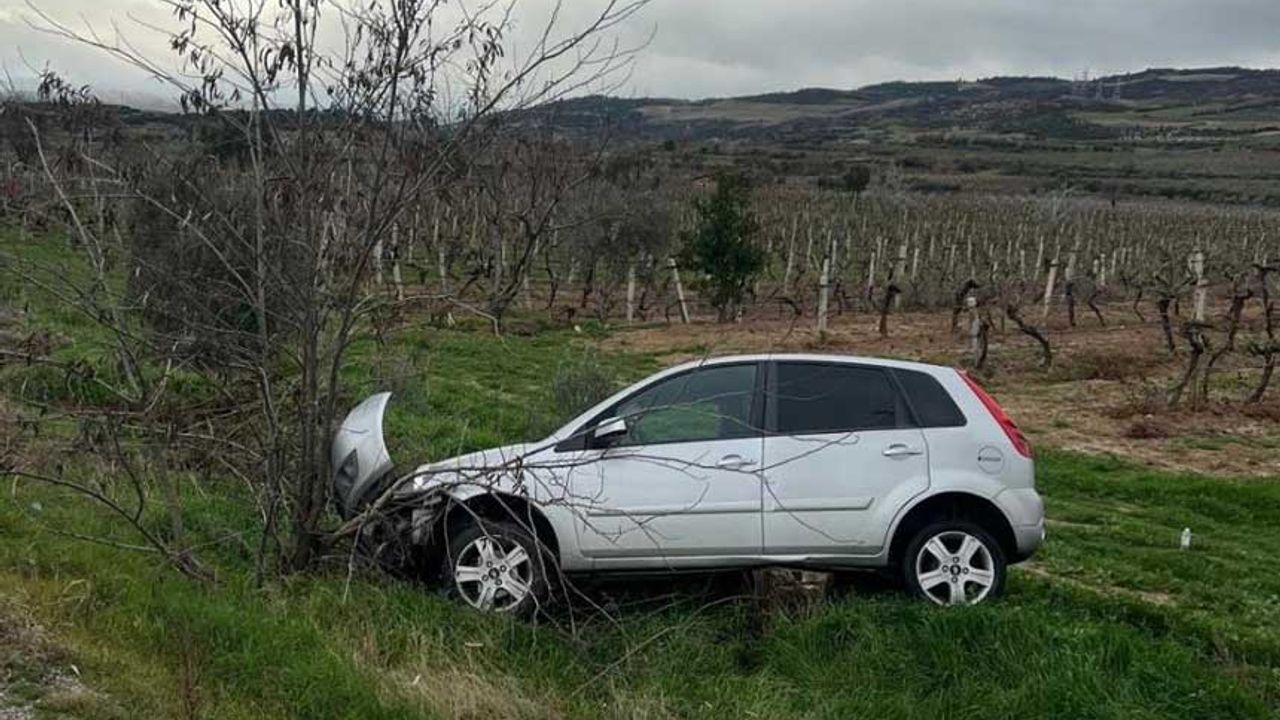 Denizli’nin Buldan ilçesinde 20 ADR 254 plakalı otomobil, yağmur yağışıyla kayganlaşan yolda sürücüsü M. S.’nin direksiyon hâkimiyetini kaybetmesi sonucu kontrolden çıkarak üzüm bağına uçtu. Kazada can kaybı ve yaralanma yaşanmazken, otomobilde ağır maddi hasar meydana geldi.