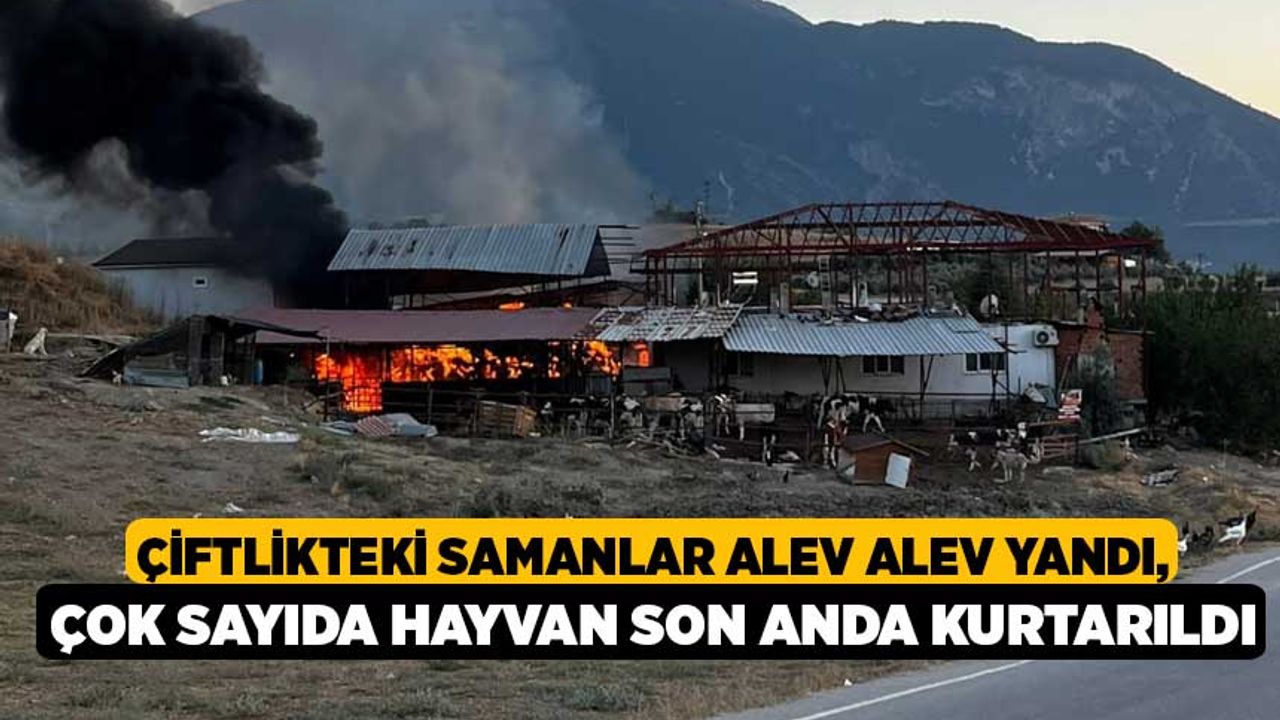Denizli’de bir çiftlikte çıkan yangında, ahırın yanında bulunan balya halindeki samanlar alev alev yandı. Çiftlikte bulunan çok sayıda hayvan ise zarar görmeden son anda kurtarıldı.