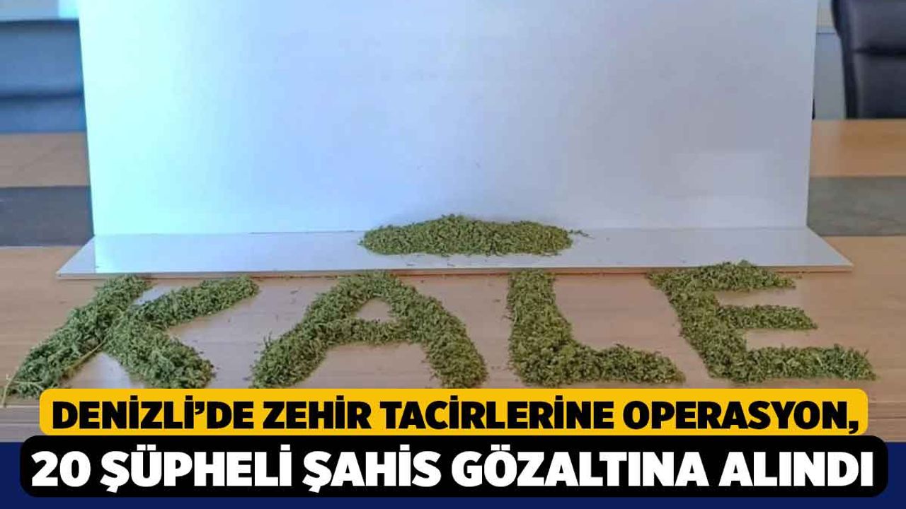 Denizli’nin Kale ilçesinde İlçe emniyet Amirliği ekipleri, Cumhuriyet Başsavcılığı koordinesinde zehir tacirlerine yönelik operasyon düzenledi. İlçede uyuşturucu madde ticareti yapan şahısların kimlik ve adreslerini belirleyen polis ekipleri adreslere operasyon düzenledi. Operasyon kapsamında 20 şüpheli şahıs gözaltına alındı. İkametlerde yapılan aramalarda, 193 gram kubar esrar, 198gram toz esrar, 4.26 gram metamfetamin, 21 adet galara, 3 gram sentetik kannabinoid, 1 adet lyrica hap ele geçirildi.