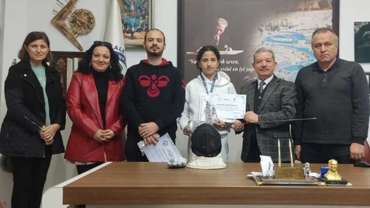 Denizli’de Pamukkale Halk Eğitimi Merkezi Müdürlüğü tarafından açılan eskrim kursunda eğitim alan sporcu Meryem Koru, Denzili’yi temsilen katıldığı önemli bir organizasyonda büyük bir başarıya imza attı. 19-27 Aralık 2025 tarihleri arasında Konya’da gerçekleştirilen U10-U12-U14 Epe Türkiye Kupası müsabakalarında, U12 Kadın Epe kategorisinde mücadele eden Meryem Koru, 123 sporcu arasından Türkiye 6’ncısı olarak madalya kazanmayı başardı. Esat Sivri Ortaokulu 6. sınıf öğrencisi olan Meryem Koru, sergilediği üstün performansla hem ailesini hem de Denizli’yi gururlandırdı. Pamukkale Halk Eğitimi Merkezi eskrim eğitmeni Emirhan Kelçeoğlu ile Gençlik ve Spor İl Müdürlüğü eskrim antrenörü Gül Bircan tarafından hazırlanan genç sporcu, kıran kırana geçen müsabakalar sonucunda Türkiye altıncılığı madalyasına uzandı. Pamukkale Halk Eğitimi Merkezi Müdürü Cengiz Sarıca, başarılı sporcu Meryem Koru’yu ve emeği geçen eğitmenlerini makamında kabul ederek başarı ve teşekkür belgesi ile hediye takdim etti. Sarıca, Şubat ayında yapılacak olan Türkiye geneli yarışmalarda da Meryem Koru’ya başarılar diledi.