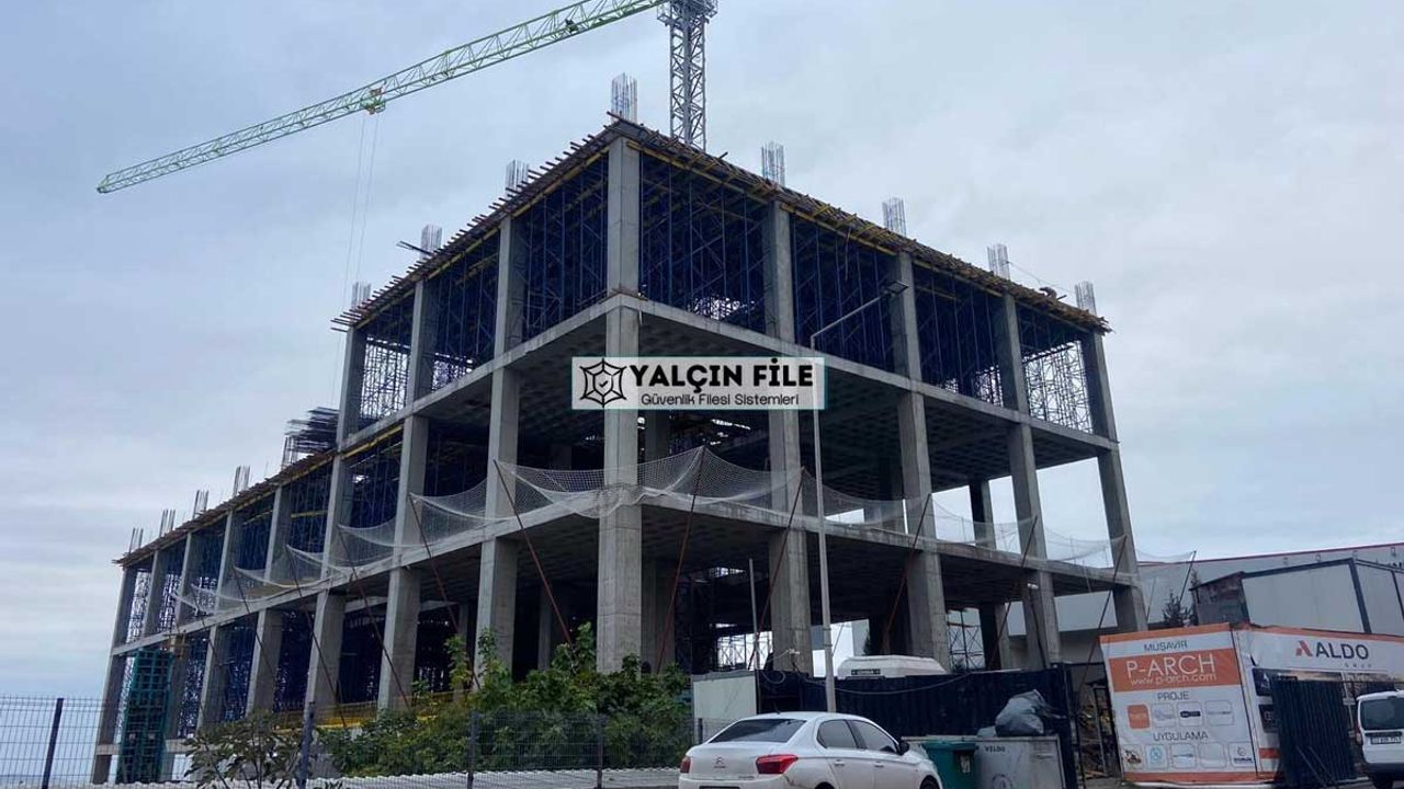Bu fileler, düşen insan veya malzemeyi tutarak kazaların şiddetini azaltır. Aynı zamanda şantiye çevresine savrulabilecek moloz ve ekipmanların dış alana çıkmasını engeller.