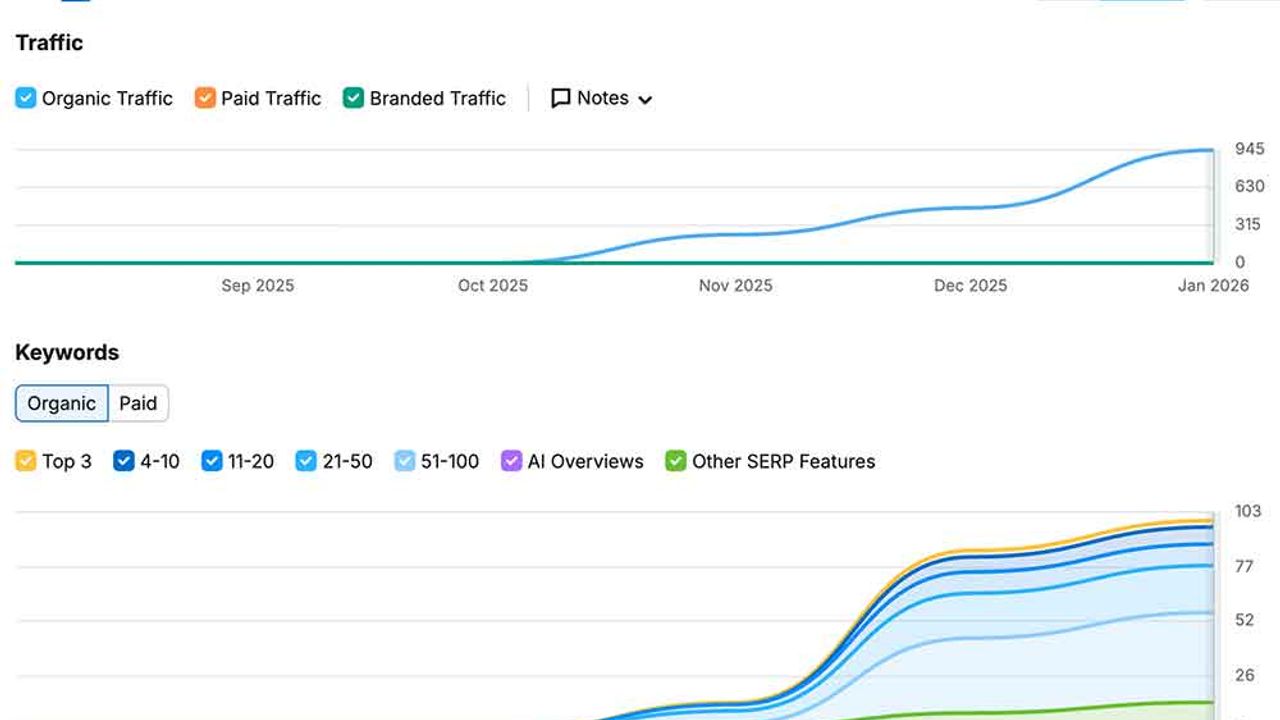 Grafiğe bakıldığında, organik trafiğin belirgin biçimde hızlandığı dönemin ekim sonrası olduğu görülüyor. Bu da aslında SEO’nun doğal ritmiyle uyumlu bir sonuç. Çünkü arama motorları, bir siteyi yeni baştan tanımladıktan sonra belirli bir süre test ediyor ve güven sinyalleri tutarlı şekilde devam ederse, daha üst sıralarda daha fazla alan açıyor.