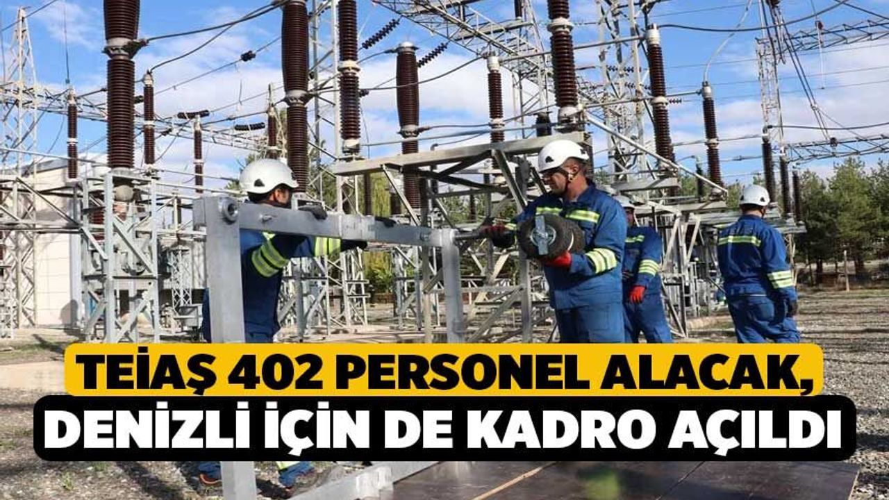 TEİAŞ Genel Müdürlüğü, işyerlerinin sürekli işçi kadrolarında istihdam edilmek üzere önlisans mezunu toplam 402 işçi personel alımı yapılacağını duyurdu. Alım kapsamında Denizli için de kadro açıldı. Açıklamaya göre kentte 5 elektrik teknikeri, 2 elektronik teknikeri ve 1 inşaat teknikeri olmak üzere toplam 8 personel alınacak.
