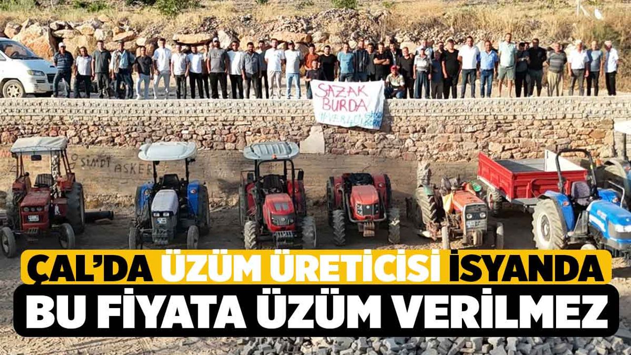 Denizli'nin Çal ilçesi Sazak Mahallesi'nde üzüm üreticileri tüccarın verdiği fiyatı protesto etti. Uzun emekler sonucu üzüm hasadından gelecek parayla hayaller kuran Sazak Mahallesi üzüm üreticileri tüccarın verdiği 20 lira'yla hayallerine veda etti. Üreticiler, "Bağlarımızda alın teriyle yetiştirdiğimiz üzümün değeri 40 TL iken, tüccar bizlere 20 TL fiyat verdi. Bu adaletsizliği kabul etmedik, çiftçiler olarak protesto ettik ve kantarları kapattık. Bizler üretmezsek sofralarda ekmek, üzüm, meyve olmaz. Köylü milletin efendisidir! Sesimizi duysunlar, emeğimize sahip çıksınlar." ifadelerini kullandı.