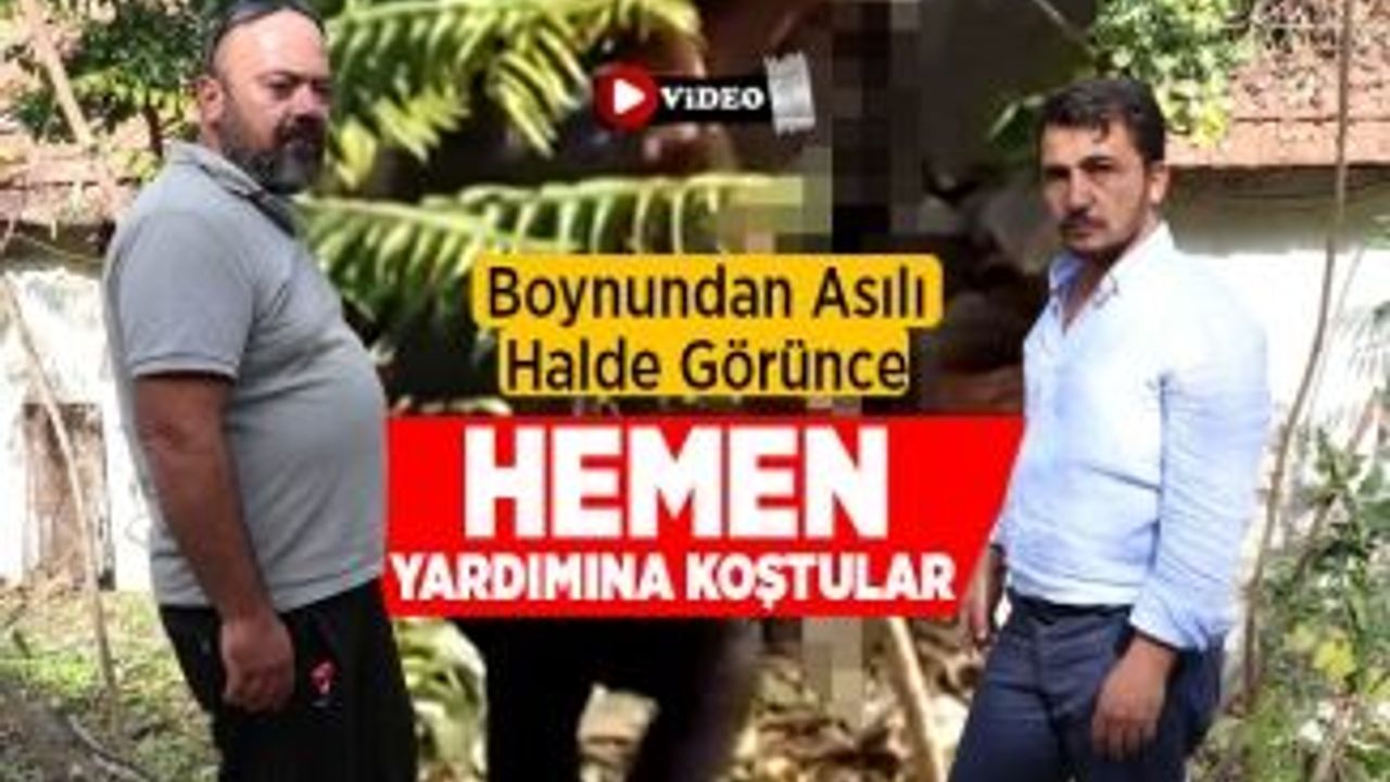 Denizli'deki bir çiftlik evinde, ağaca boynundan asılı halde duran ve can çekişen köpek, duyarlı vatandaşlar tarafından ölmek üzereyken bulundu.